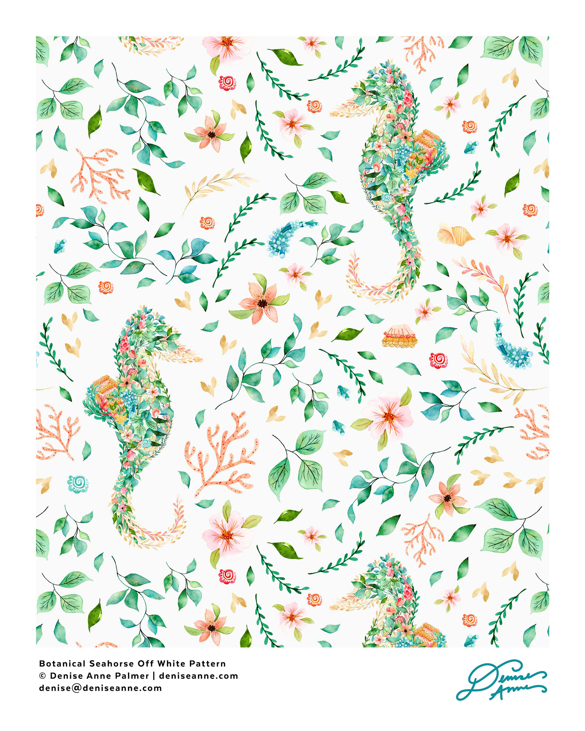 Botanical Seahorse Off White