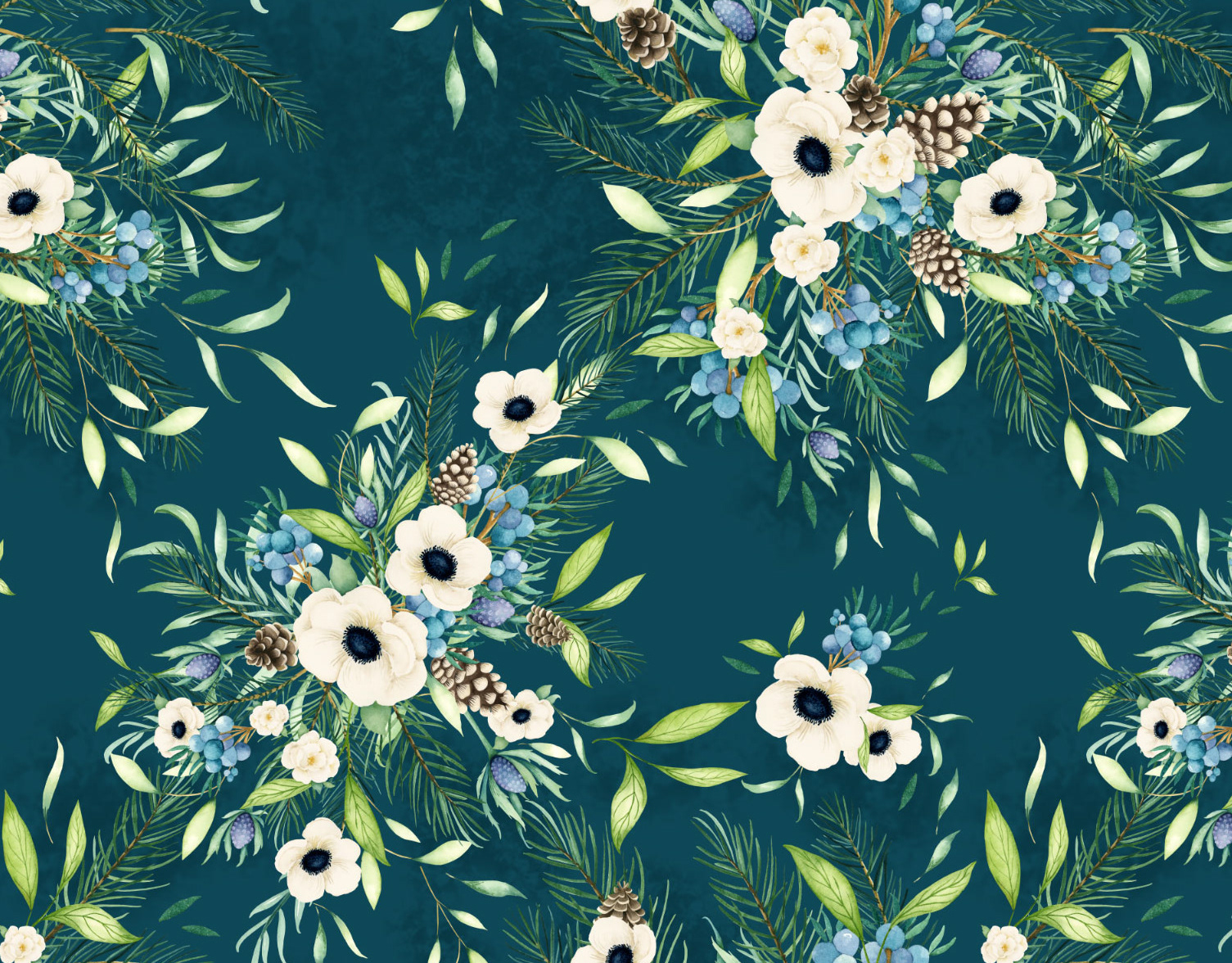 White Anemone Pineberry in Navy Mist