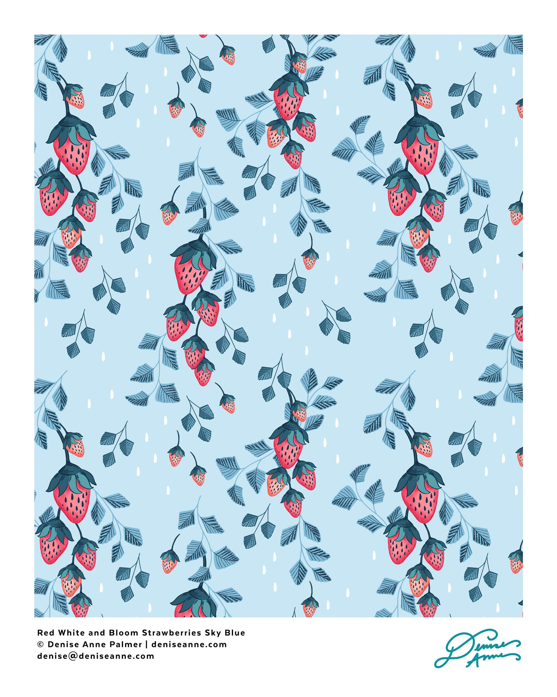 Red White & Bloom Strawberries Sky Blue